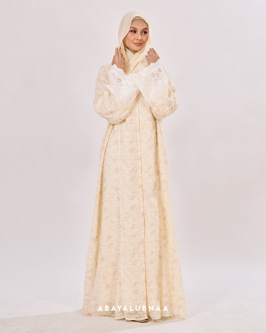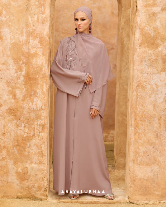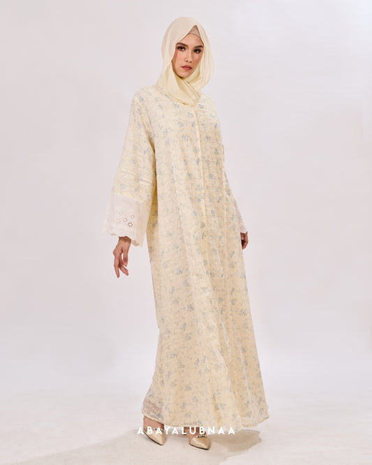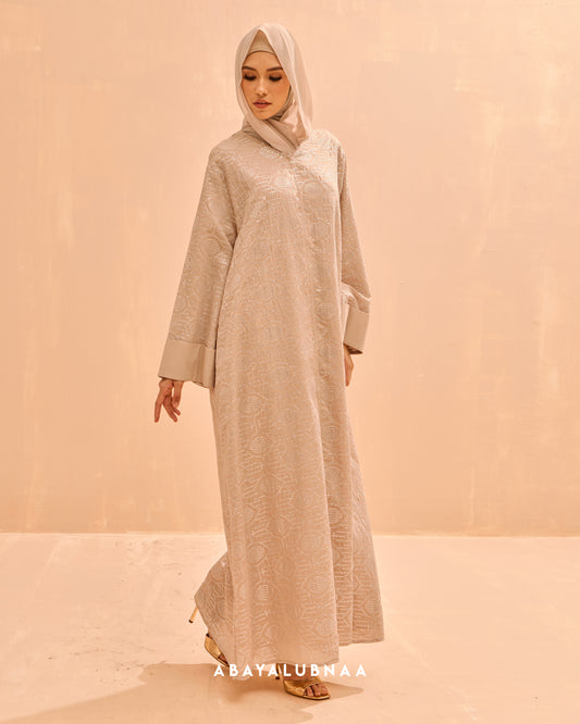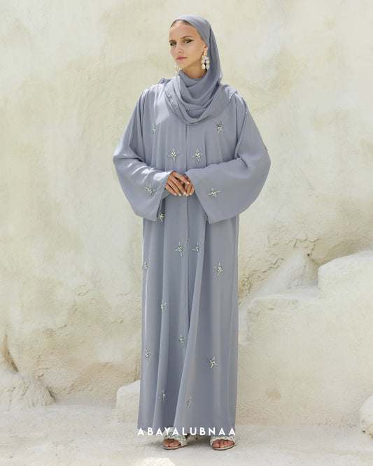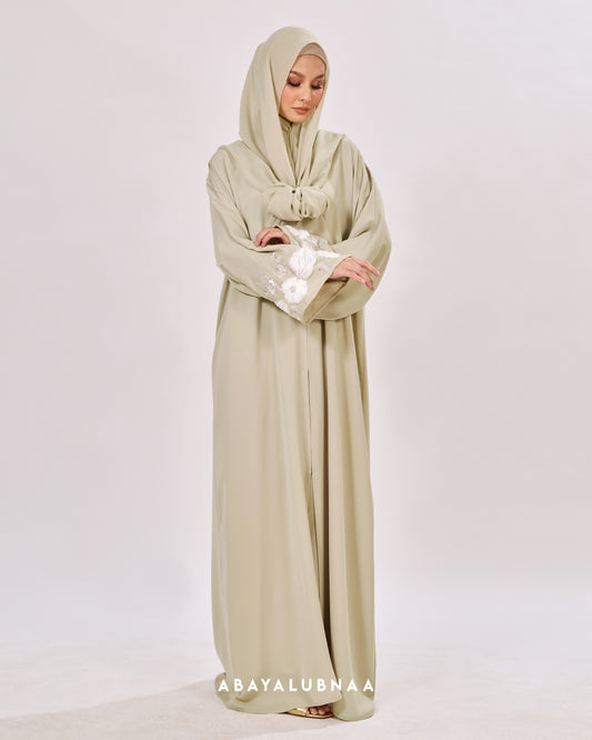 Luxurious and decadent, Tasnim, Nasreem and Layla Reinterpreting the traditional Moroccan silhouette, this modern abaya brings the beauty of botanicals to life in a contemporary fashion.