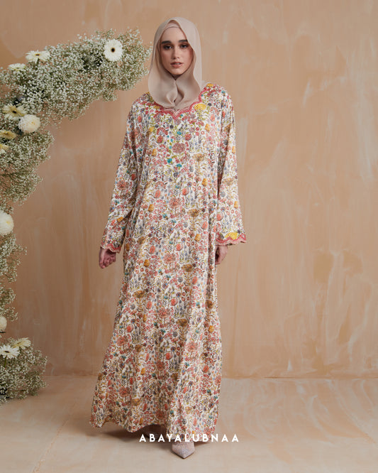 Intricate embellishments and fun florals make Amara an abaya that is contemporary yet timeless. Cut in a relaxed straight cut silhouette, Amara is crafted in soft Nidha fabric, weighted on the bottom by the sparkly stones to enhance its flowing shape.