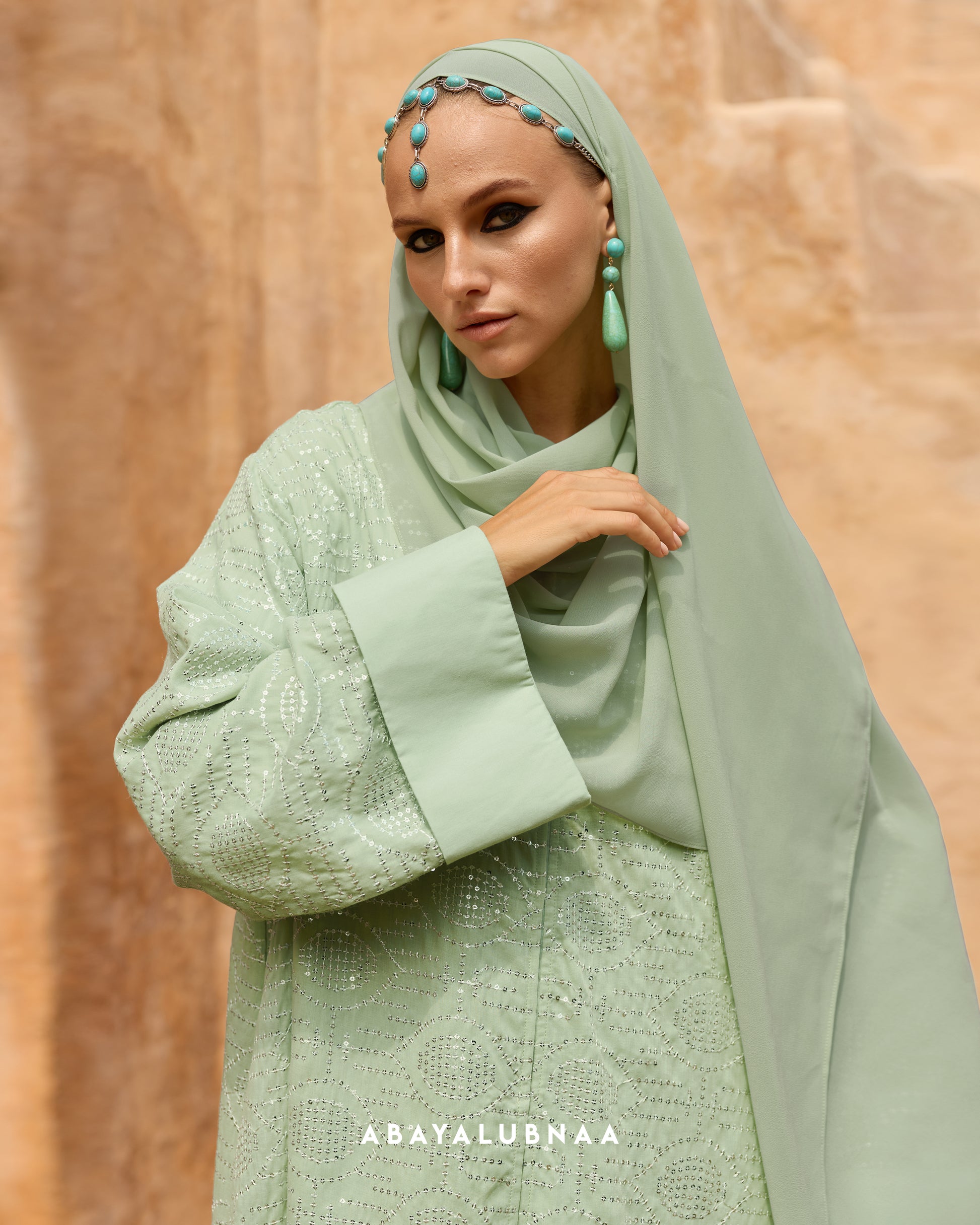Basma Abaya in Sage Green