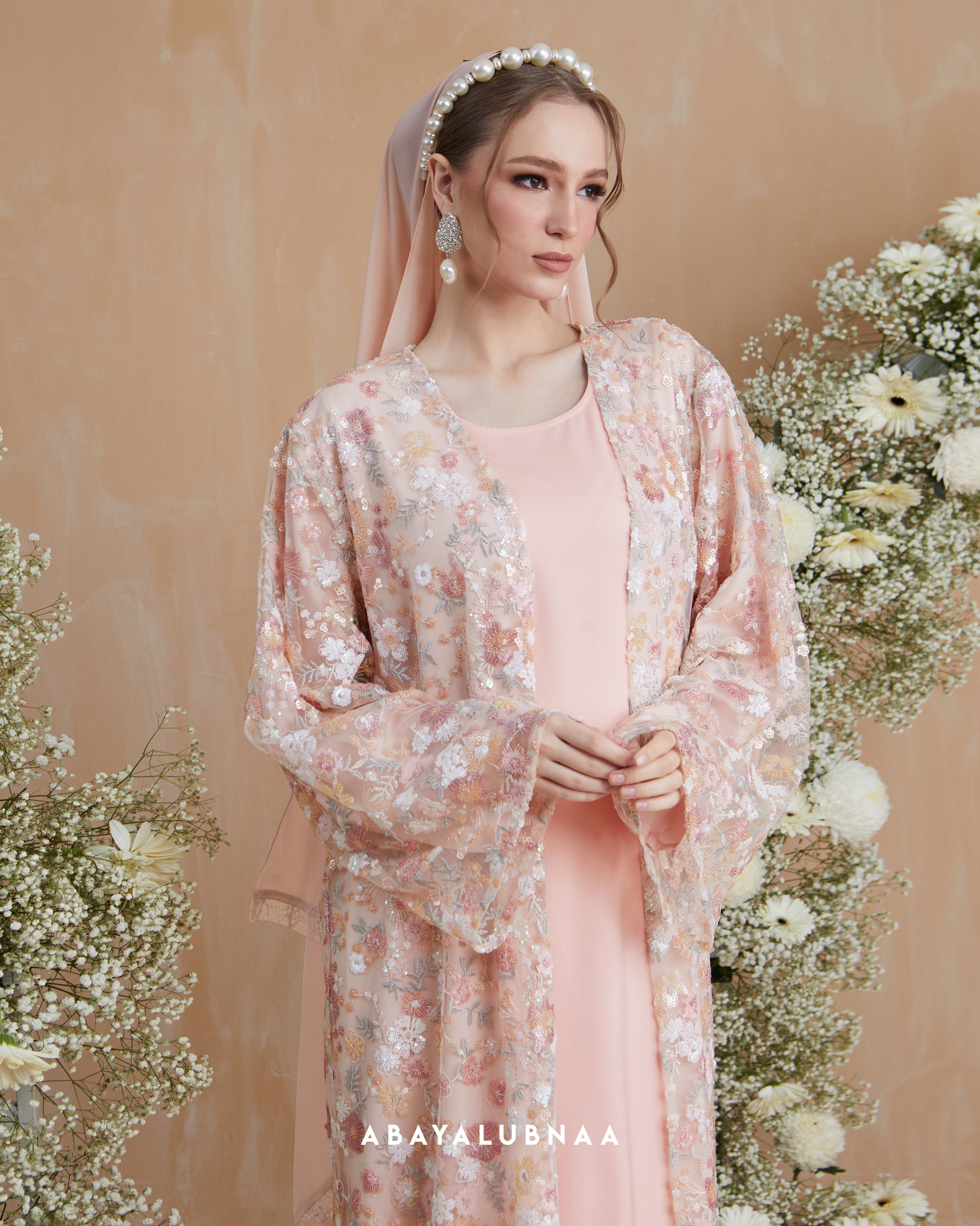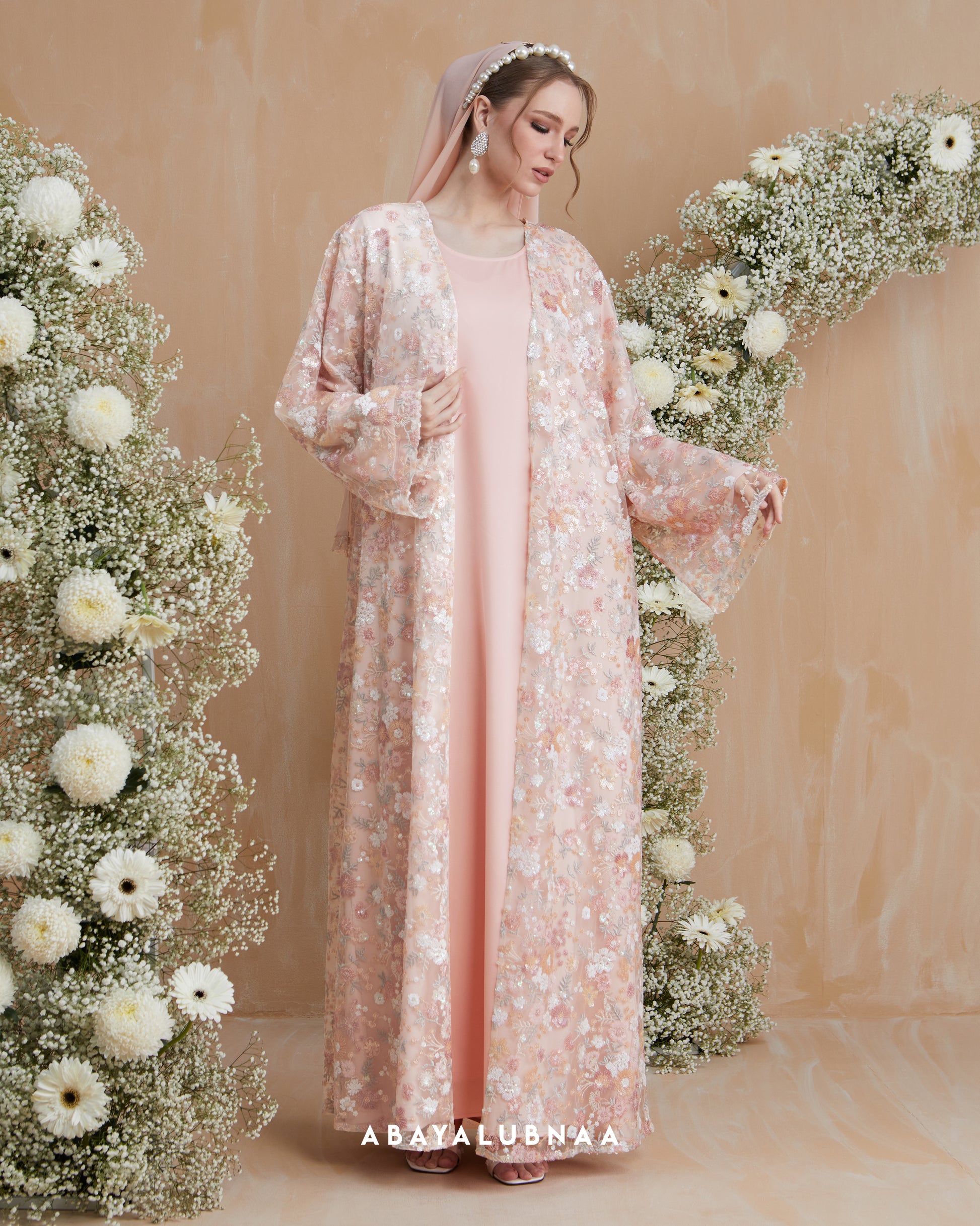 Bringing the beauty of florals to the forefront, Bluebell is a two piece abaya set ideal for the upcoming wedding season.