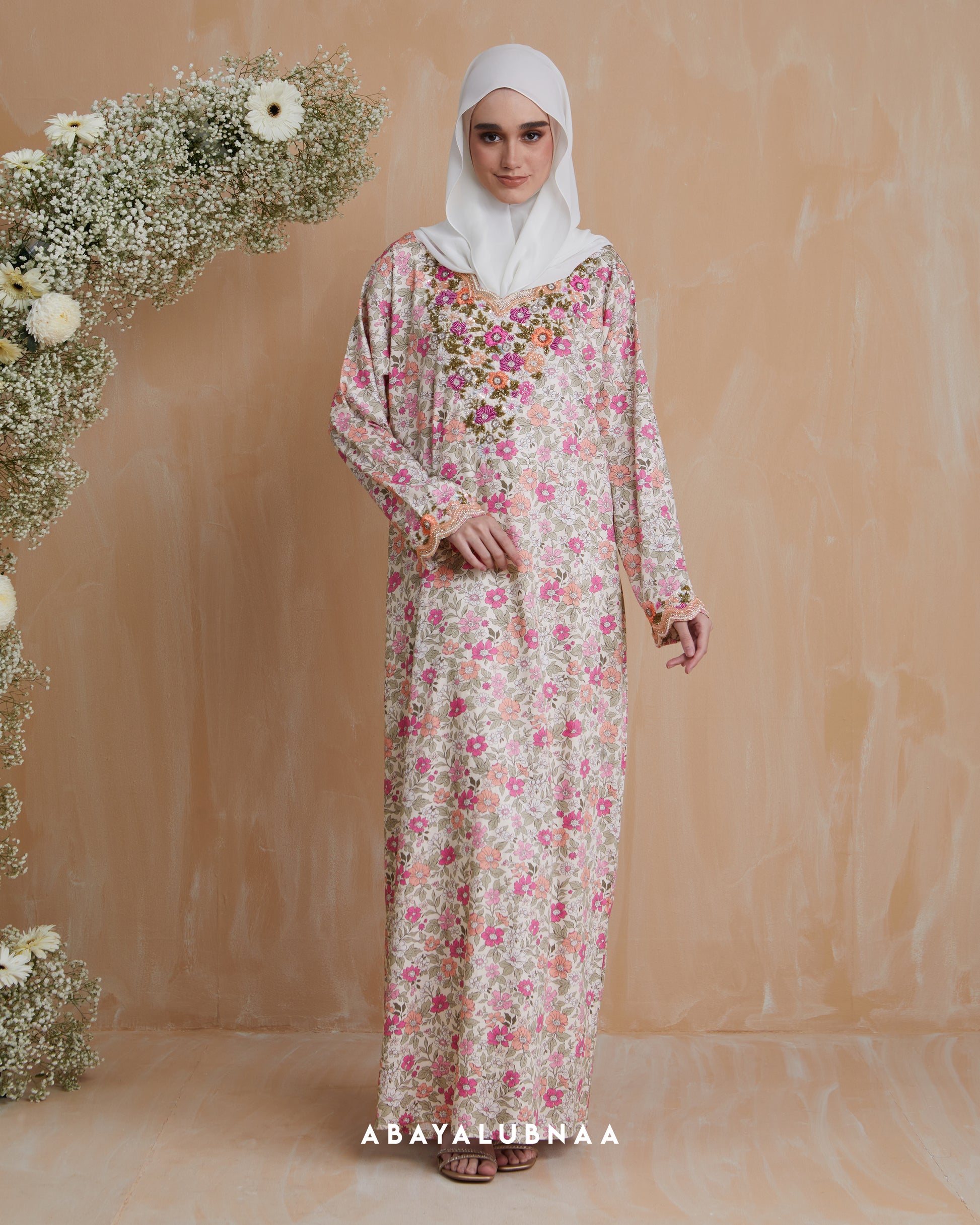 Our colourful galabiyas are now available in soft comfy cotton. Easy to care and wear, our selection of floral galabiyas are versatile pieces that you can wear from day till night. Match them with your favourite accessories for a complete look and step out with confidence in any setting.