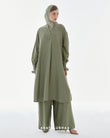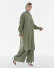 A cool two-piece design, Karima features a top and pants in a contemporary style well suited for Umrah 2025. Crafted from cooling blended linen, Karima displays dramatic sleeves and a relaxed mandarin collar in a variety of flattering natural shades.