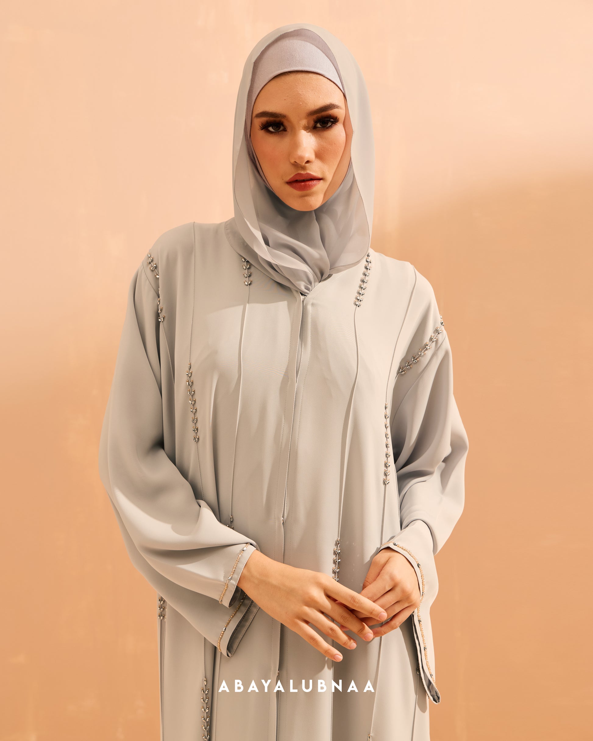 A structured open-type abaya with clean lines of sparkly beads formed in a leafy motifs, Lumina personifies quiet luxury, making its mark through impeccable craftsmanship paired with soft premium fabric.