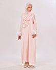 Channeling romance with a nod to vintage aesthetics, Maleeha is an elaborate abaya traced with floral lace on the cuffs and appliqued with bountiful blossoms on the sides and back.