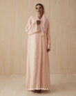 Featuring a dual tone design patterned with embroidered clovers and framed by three distinct garlands circling the sleeves, Razia has an understated quality brimming with sophistication.