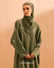 Comfort and modesty go hand in hand with Tiara. A batwing abaya in airy blended linen, Tiara is decorated with pearl flowers and beaded stalks popping abundantly across the abaya.