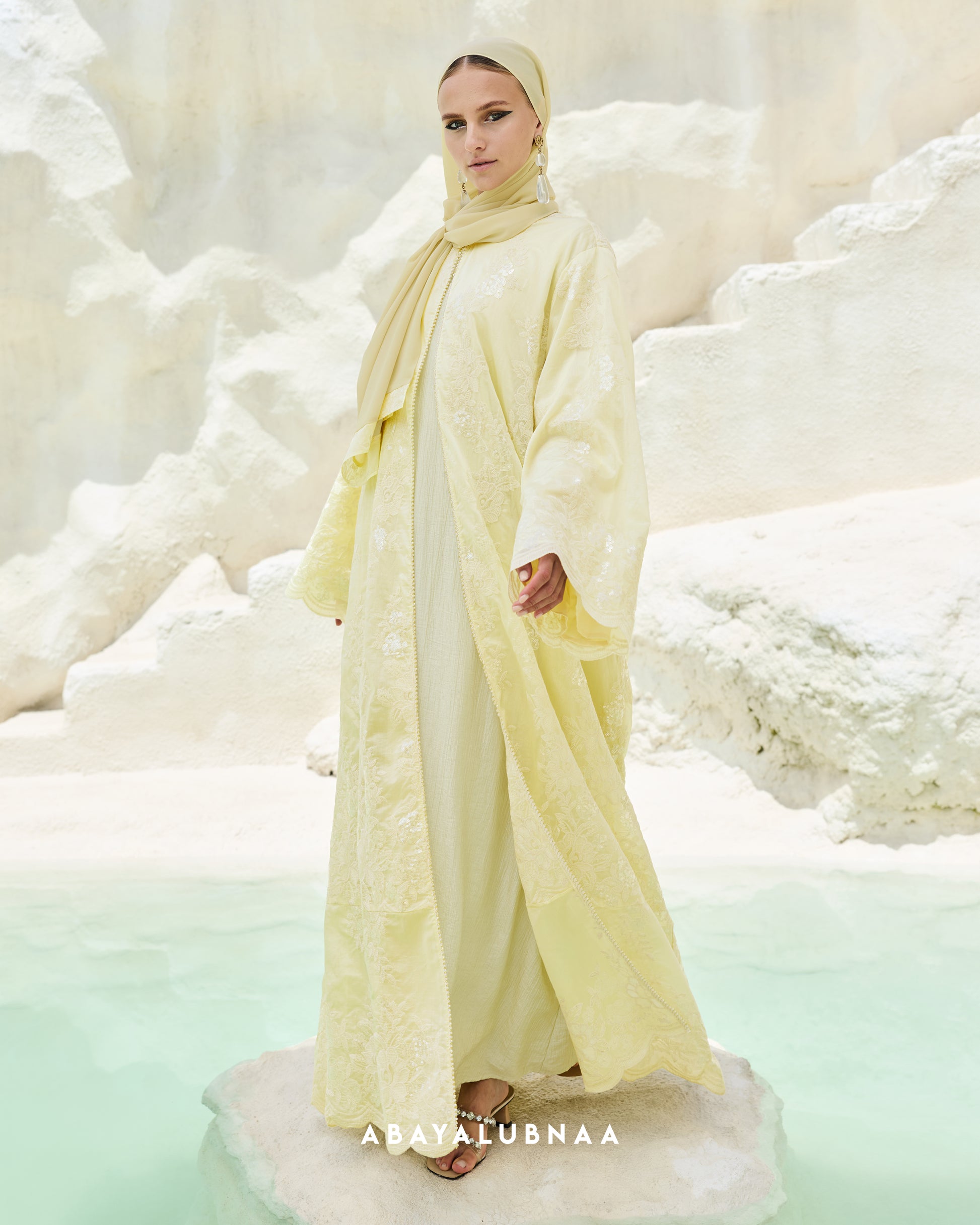 Available in lovely pastel hues, Wafa has a floor-skimming hem and wide cut sleeves that covers you well while allowing you to move with ease so you can perform your prayers in comfort.